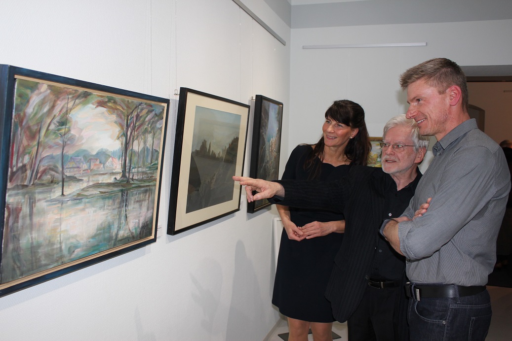 | Bereits in der Vergangenheit hatten wir verschiedene kleine Ausstellungen in unseren Praxisräumen - Collagen von Schülern vom Kunstunterricht des Gymnasiums Johanneum, Kupferstiche, Landschafts- und eigene Fotos. Bilder können berühren, anregen, gefallen oder nicht gefallen, zu Gesprächen inspirieren, verschiedenste Menschen zusammenführen. Und genau das konnten wir erleben. Mit einer einfühlsamen Rede und der Vorstellung des Spohlaer Malers Karl- Heinz Hochstädt begann die Vernissage in unserer Praxis. Etwa 40 geladene Gäste kamen mit dem Künstler, dessen Bilder noch bis Mitte Juli ausgestellt sind, mit uns und miteinander ins Gespräch. (Foto: H. Linke)