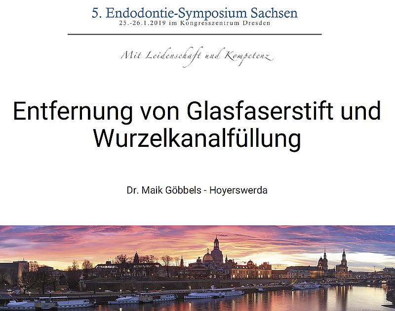 | Ende Januar fand im ICC in Dresden das 4. Endodontie-Symposium Sachsen zum Thema "Die Revision in der Endodontie - Aktuelle Möglichkeiten" statt. Über 300 Teilnehmer folgten einem weit gefächerten Angebot an Vorträgen und Workshops über die Erneuerung einer vorhandenen Wurzelfüllung. Moderne Behandlungsmethoden können mit einer sehr guten Prognose heute Zähne retten, die früher häufig extrahiert wurden.